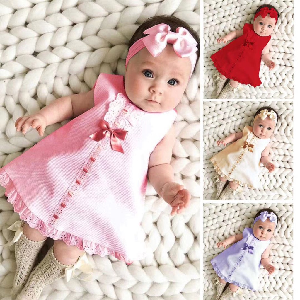 Baju Newborn Girl Baby Dress Sleeveless Casual Maxi Bow Dress Headband Set Outfit Fashion Lace Baju Kurung Newborn Girl Shopee Malaysia